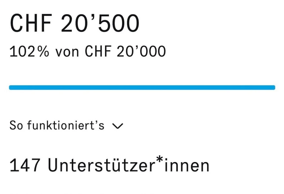 Dank euch konnten wir die fehlenden 20'000 CHF zusammenbringen und damit den letzten großen Schritt zur Realisierung unseres Projekts machen.