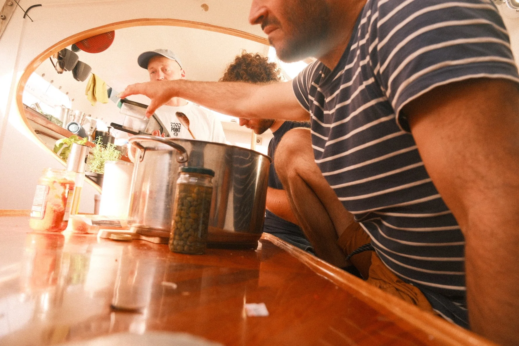 Natürlich ist nicht jeder Tag so harmonisch wie dieser den ich hier beschreibe (...obwohl die meisten sehr harmonisch sind!). Wir versuchen noch herauszufinden wie wir uns in der Gruppe am besten organisieren. Wieviel Struktur brauchen wir? Wieviel funktioniert einfach so? Was dürfen oder sollen wir wann kommunizieren? Heute Morgen haben wir uns nach dem Frühstück verabredet, um gemeinsam darüber zu sprechen, ob es Dinge gibt die uns stören, oder Abläufe, die wir angenehmer gestalten können. Und schon hier gehen die Meinungen auseinander. Brauchen wir regelmässig einen Rahmen, in dem alle 12 zusammenkommen, um über bestimmte Themen zu sprechen? Wieviel lässt sich auch bilateral klären? Während einige solche Runden sehr schätzen, empfinden andere sie hingegen als ziemlich anstrengend. Bei einigen Themen kommen wir in der grossen Runde tatsächlich nur in kleinen Schritten vorwärts, in anderen finden wir uns jedoch schnell. Beispielsweise haben wir uns an diesem Morgen geeinigt, dass die Routenplanung und das damit verbundene Wetter-Checken nicht nur Aufgabe der Skipper sein soll. Bis dahin haben diese Aufgabe meist diejenigen übernommen, die sich bereits gut mit unserer Wetter- und Routenplanungs-App auskennen. In Zukunft wollen wir jedoch lauter kommunizieren, wenn sich ein paar mit dem Wind auseinandersetzen, damit alle die Chance haben dazuzukommen und zu lernen.