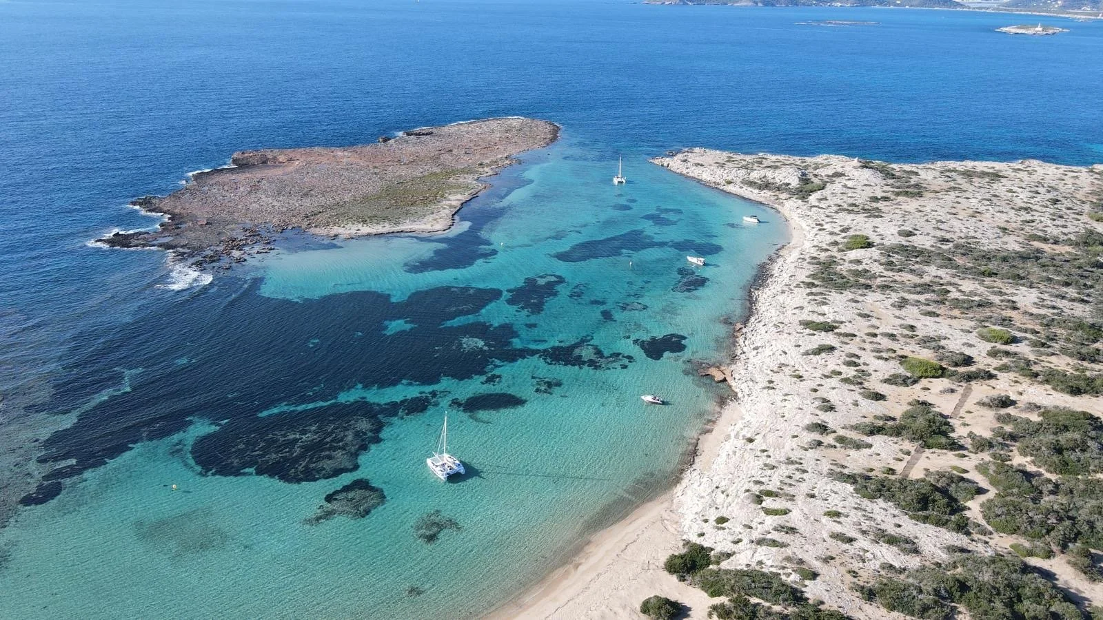 Mit dieser Bucht, verlassen wir die Letzte der Balearen und machen uns auf den Weg Richtung Festland. Wir wollen genug früh in der Nähe von Gibraltar sein. Die Wetterfenster, um aus dem Mittelmeer zu gelangen, sind nach wie vor sehr begrenzt und wir möchten nah sein, sobald sich ein gutes öffnet. Unsere Überfahrten von Menorca nach Mallorca und dann von Mallorca nach Ibiza waren deutlich entspannter als die Erste, von Sardinien nach Menorca. Meistens sind wir nah beieinander gesegelt und konnten Funkkontakt halten. Das mit der Übelkeit haben wir inzwischen auch schon besser im Griff, die Polenta sollte ja hoffentlich drinbleiben. Nun freuen wir uns sehr auf eine nächste Nachtfahrt und darauf, in unseren ersten grossen Hafen in Cartagena einzulaufen.