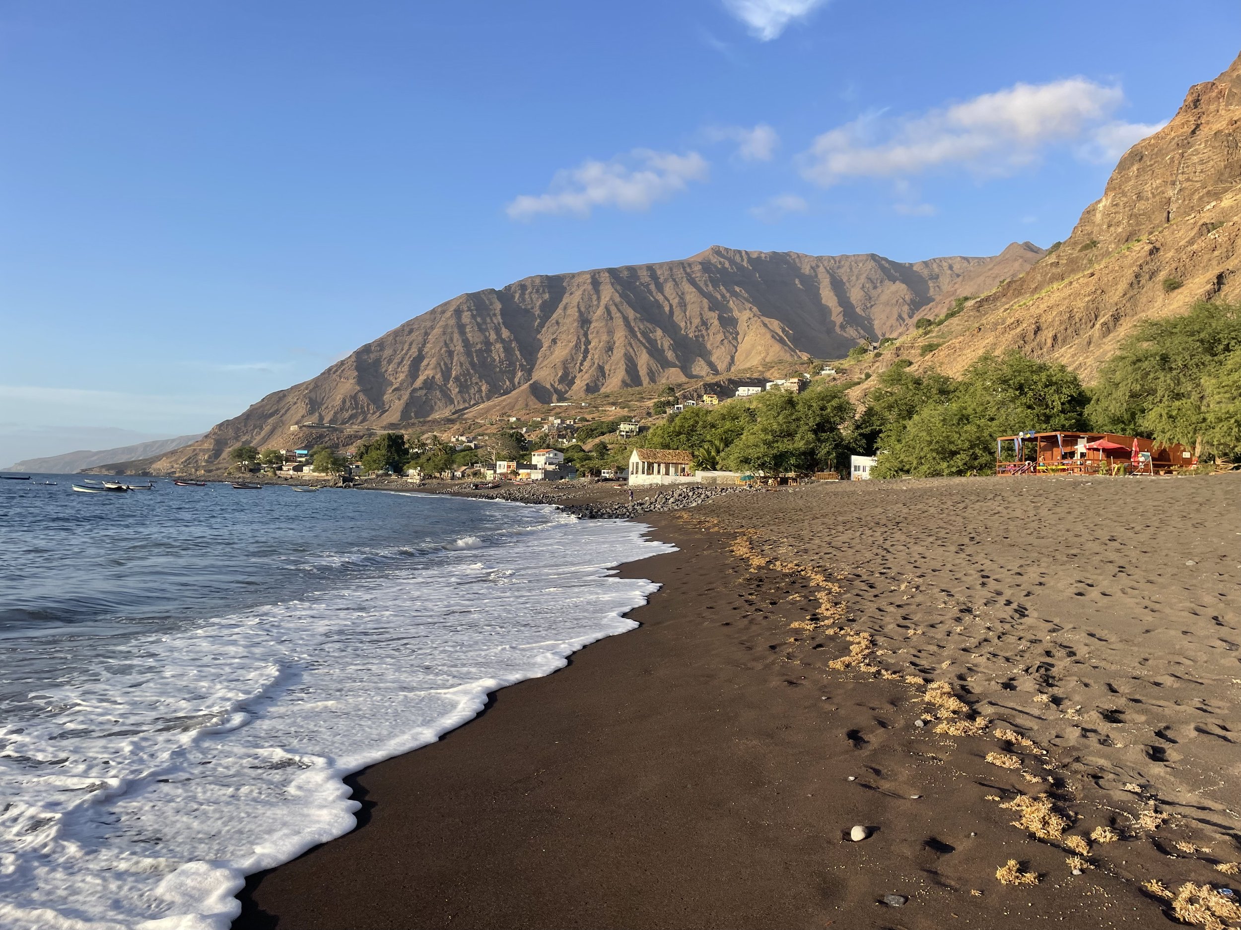 Kurz vor der geplanten Abfahrt wird klar, dass Dshame aufgrund einer familiären Angelegenheit nach Hause in die Schweiz fliegen muss. Wir beschliessen auf ihn zu warten und wollen in dieser Zeit noch mehr von den Inseln entdecken. Wir segeln am 9. Januar rüber auf die westlichste Insel der Kap Verden, Santo Antão und lassen unseren Anker in einer Bucht ganz im Süden fallen.