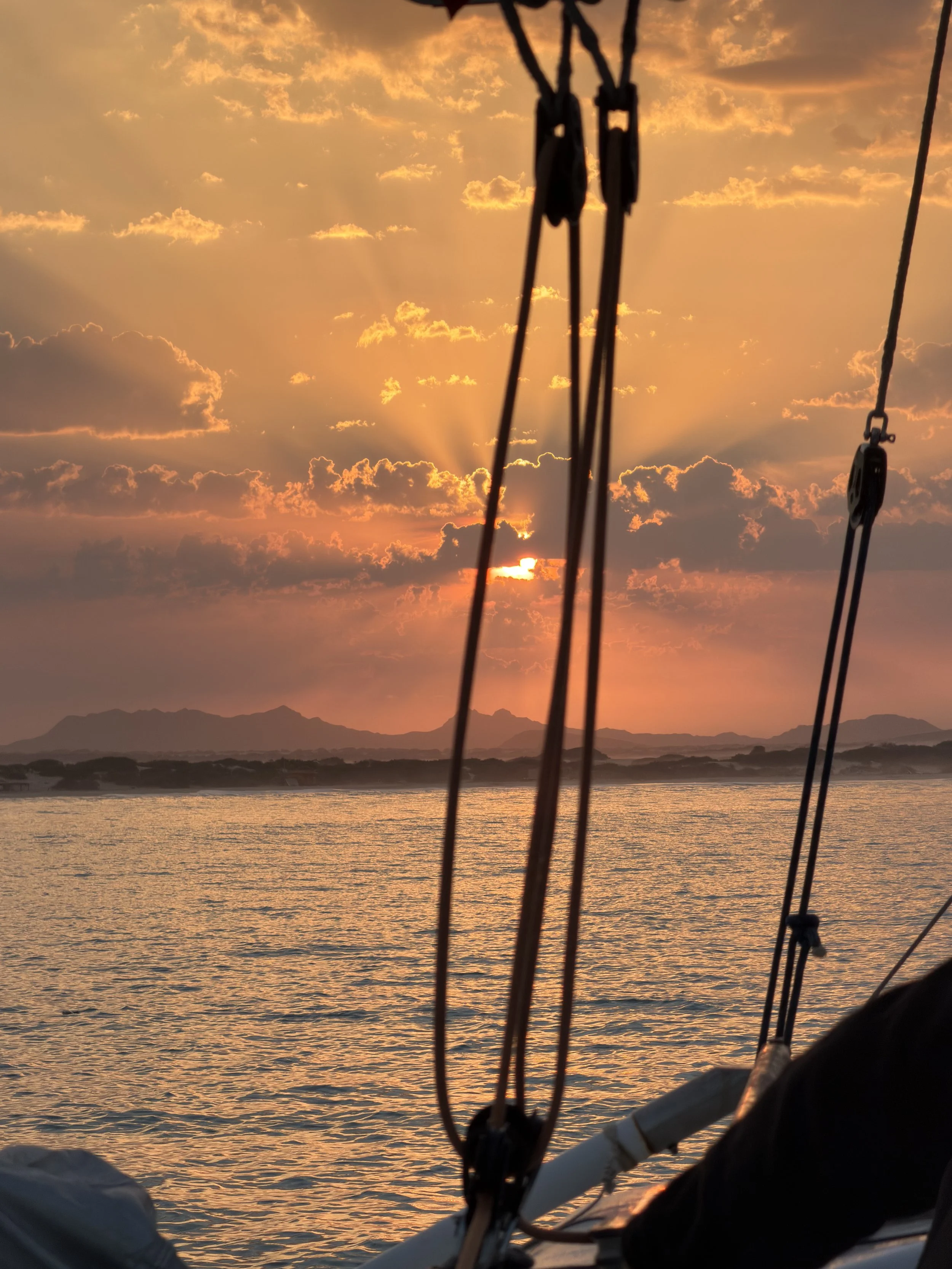 Lange bleiben wir nicht in Palmeira, nach 2.5 Tagen segeln wir weiter in den Süden der Insel. Am Strand, ganz im Süden der Insel, ist es jedoch sehr windig und touristisch. Das Kiter-Herz schlägt jedoch bei dem Wind etwas höher! Wir geniessen einen Tag Kiten, Wing-Foilen und viel Sünnelen. Kurz glauben wir, dass wir selbst zu einer Touri-Attraktion werden. Den ganzen Tag hindurch kommen immer wieder kleine Holzboote zwischen unsere beiden Schiffe, gefüllt mit Feriengästen. Irgendwann realisieren, dass wir wohl direkt über einer kleinen Tauch-Attraktion geankert haben. Ein paar Meter neben uns, wurde ein kleine Steinstatue mit ausgebreiteten Armen versenkt, der viele Schnorchler*innen anlockt. Wir entscheiden schnell weiterzusegeln. Die Entscheidung darüber wo wir hinwollen, wird jedoch nicht ganz einfach. Obwohl wir uns einig sind, dass wir gerne Anfangs Januar über den Atlantik würden, haben wir uns nicht auf denselben Zeithorizont eingestellt. Mit Schrecken müssen wir feststellen, dass unsere Zeit auf den Kap Verden sehr kurz wird, einige würden eigentlich in wenigen Tagen gerne los. Dies wiederum würde bedeuten, dass wir auf direktem Weg nach Mindelo segeln sollten um uns für die Überfahrt vorzubereiten.