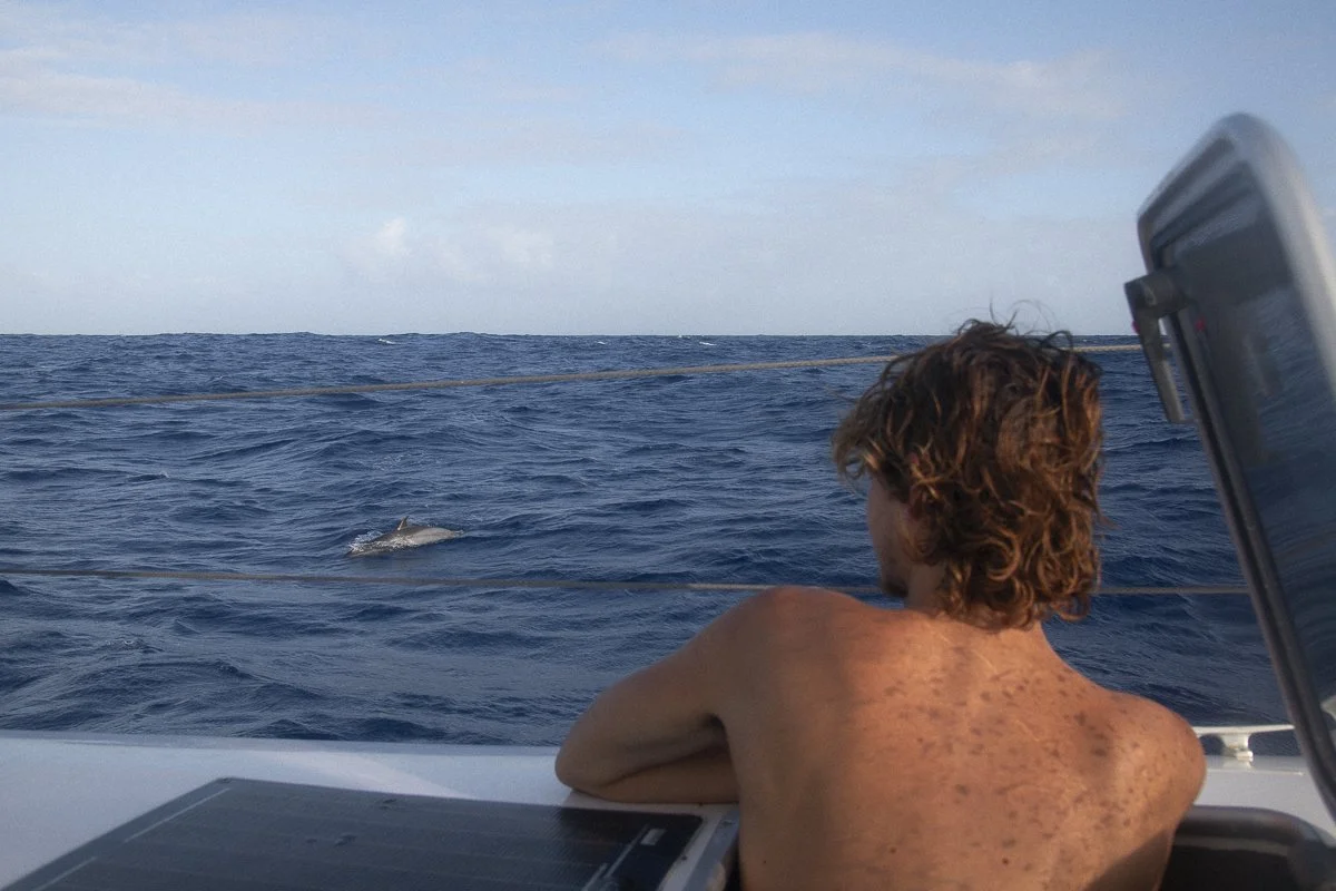 Die Schichten sind immer noch gleich. Theo und Jakob beginnen die Nacht, auf Planado sind es Nici und Flo. Dann übernehmen Carmen und Dshame zusammen mit Léonie und Iuna auf Planado. Kurz vor Sonnenaufgang stehen Aurel und ich auf und am Funk begrüssen uns Noah und Annso. Während ich also heute den ganzen Morgen steuere, tobt sich Aurel kreativ mit der Kamera aus. Danach backt Aurel eine Focaccia. Und während sie im Ofen bäckt, entdecke ich plötzlich Delfine. Und dann sehe ich immer mehr und mehr und am Ende sind es wohl über 150 Delfine, die uns zwei Stunden lang begleiten und vor unserem Bug die Wellen reiten und Saltos machen.