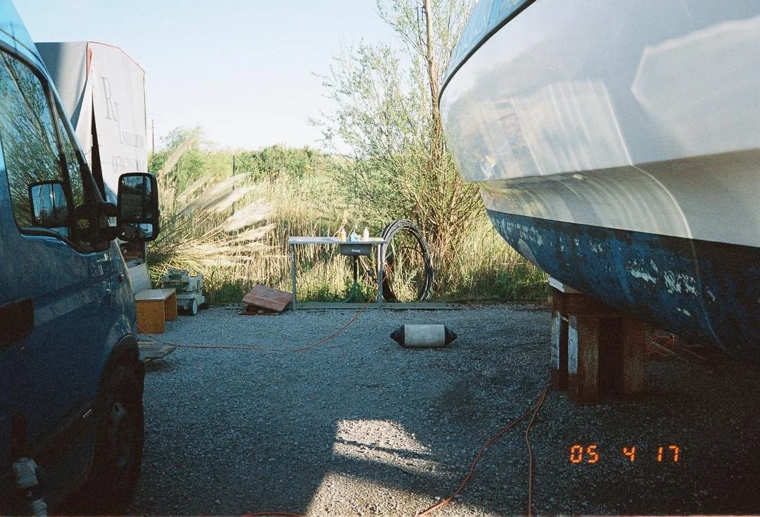 Das Unterwasserschiff wird angeschliffen und neu gestrichen. Ruder und Heck bekommen schon den lange ersehnten und sehr zeitintensiven CopperCoat Unterwasserschutz, dieser ist ökologischer und langlebiger.